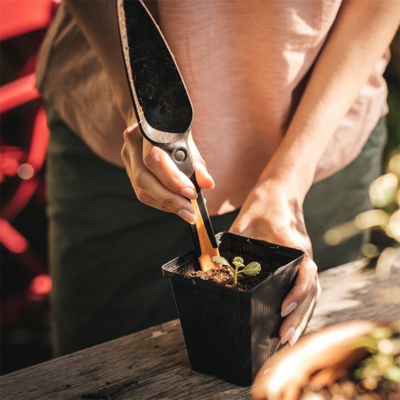 o fiskars e semeador manual de sementes oferece quatro itens essenciais para o plantio de sementes em uma ferramenta conveniente. feita de fibra durável, porém leve, esta espátula de sementes 4 em 1 é ideal para manuseio de sementes pequenas, escavação e medição da profundidade de furos, bem como espaçamento de sementes. uma caneta removível no cabo da espátula pode ser usada para contagem e manuseio controlado de sementes pequenas, direcionando as sementes para baixo na cabeça da espátula para um posicionamento preciso. a caneta também pode ser usada para fazer reentrâncias durante a colocação da semente e inclui medições gravadas e fáceis de ler ao longo de todo o comprimento da ferramenta para profundidade e espaçamento corretos da semente. além disso, o formato estreito do widget o torna ideal para o transplante de mudas menores.