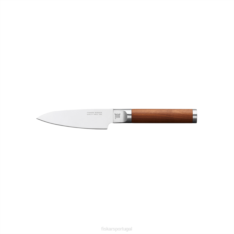 A faca Norden é ideal para cortar e fatiar frutas e vegetais. a lâmina de qualidade premium é feita de aço inoxidável alemão de alto desempenho e alto carbono, o que garante desempenho superior e nitidez duradoura. o cabo é feito de madeira de bétula tratada termicamente, naturalmente bonita e confortável, e as variações na madeira tornam cada peça única. projetadas na Finlândia.