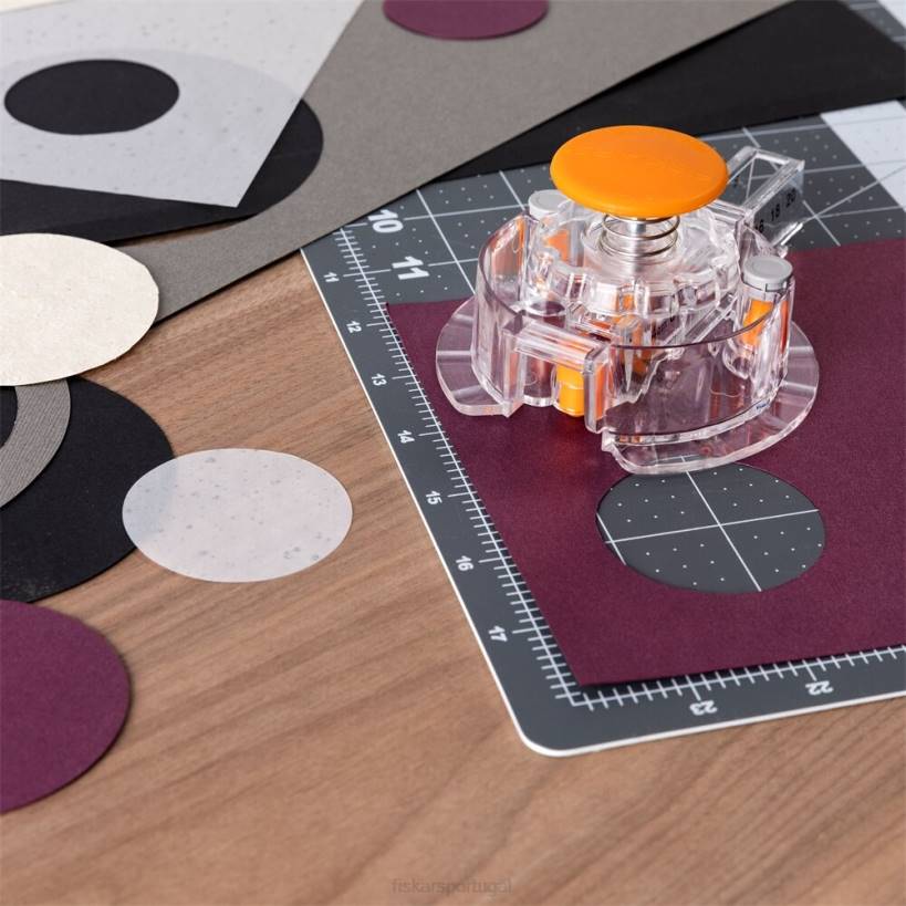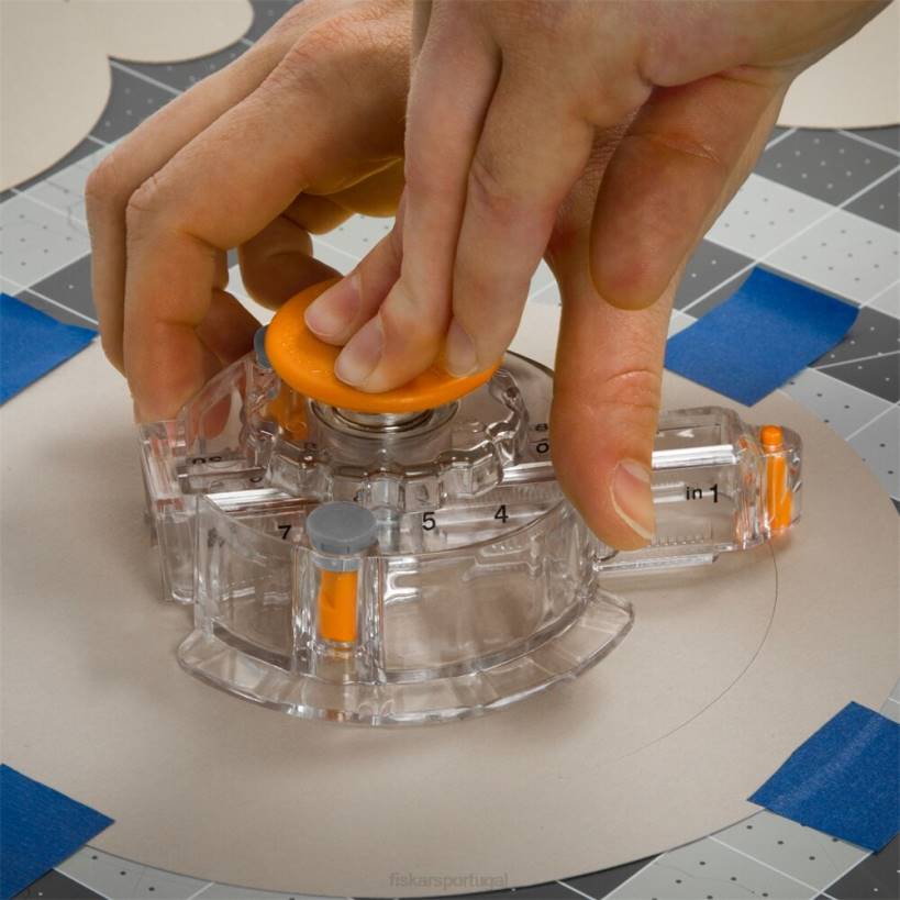 fiskars cortador de círculos facilita o corte de círculos em papel ou cartolina, perfeito para criar janelas em cartões caseiros, páginas de scrapbook e muito mais. corte círculos de 1″ a 8″ sem incrementos predefinidos para versatilidade de artesanato. o mecanismo de corte transparente e a lâmina com ponta de agulha garantem o alinhamento preciso com as necessidades do seu projeto, enquanto um pé de aderência evita o deslizamento enquanto o cortador está em uso. para usar, selecione o tamanho do círculo necessário girando a roda de trava no sentido horário para soltar o braço de corte. reaperte a roda de travamento assim que o diâmetro do círculo desejado for alcançado para fixar o braço de corte. em seguida, alinhe o cortador circular com o seu projeto e aplique pressão na ponta de controle com a mão não dominante. com a mão dominante, aplique uma leve pressão no braço de corte e mova-o em círculo ao redor do mecanismo de corte. para obter melhores resultados, use sempre uma esteira de corte autocurativa fiskars. A capacidade de corte do cortador circular destina-se a 1 folha de papel 20# (75 g/m2) ou 1 folha de papel 80# cartolina (218 g/m2).