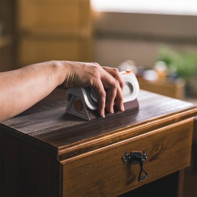 - um simples botão abre o bloco de lixa para uma troca rápida e fácil da lixa