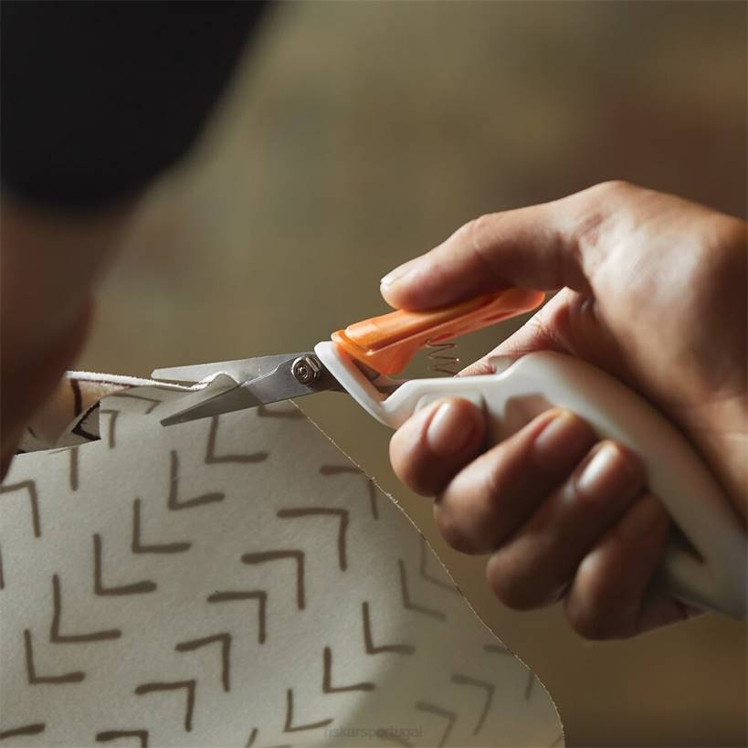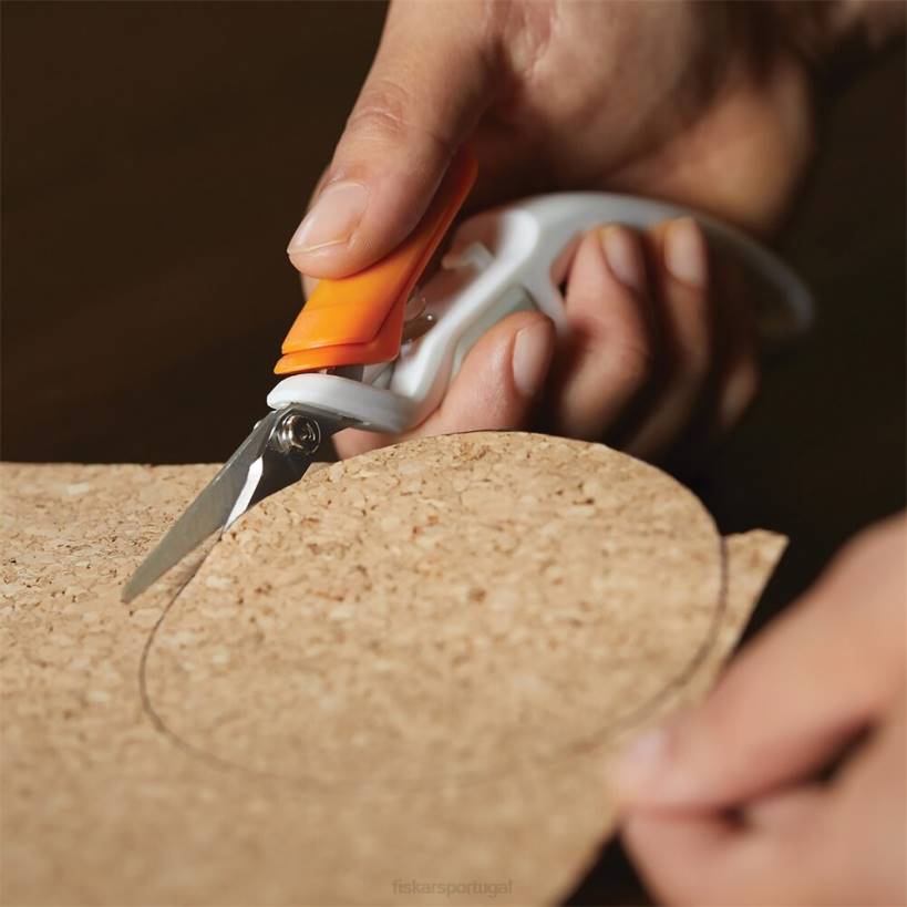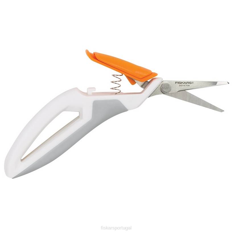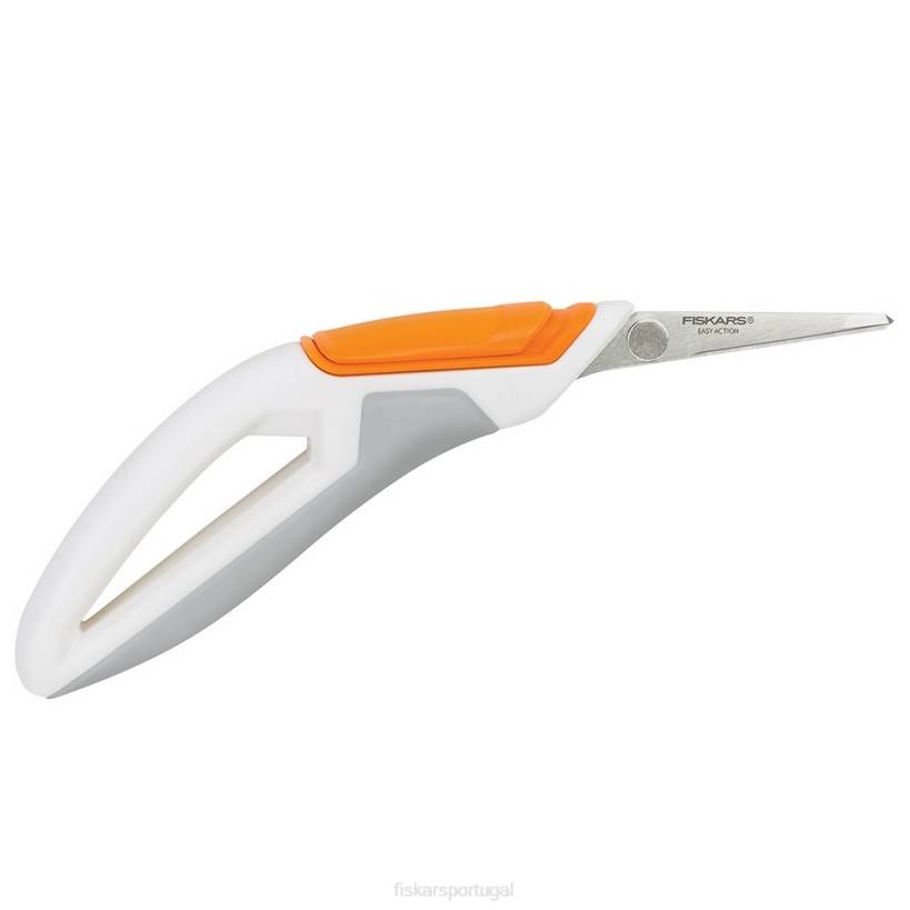 - fiskars total control easy action ™ tesouras de precisão apresentam um design de mola ativado pelo polegar que maximiza o controle e limita a fadiga. Os pontos de contato suaves no cabo ergonomicamente esculpido oferecem conforto e controle excepcionais durante detalhes e cortes repetitivos. para cortes precisos em cartolina, fita, aglomerado, serapilheira e outros materiais de bricolage