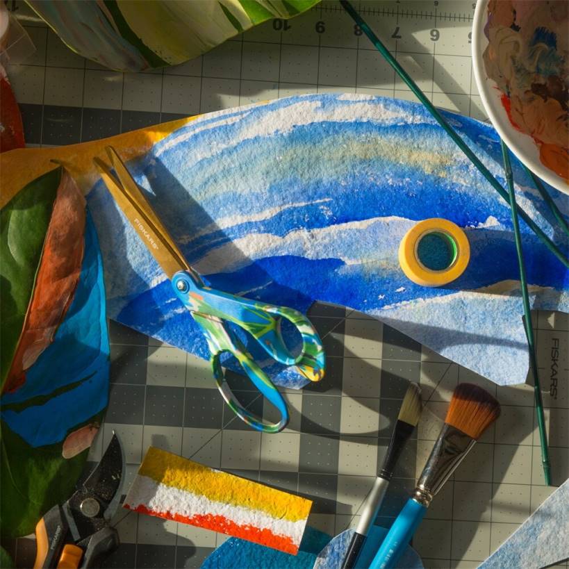 adicione aventura ao seu dia a dia comcriado com tesoura fiskars no avant garden pela esposa de Nova York, Sophie Parker, apresentando um prisma de pinceladas pintadas à mão dançando sobre folhas tropicais. “Todos os dias entro no estúdio com uma sensação de diversão e mente aberta – pronto para ver aonde a natureza me leva”, escreve Parker. desfrute do mesmo desempenho premium e conforto excepcional da tesoura original com cabo laranja, com lâminas de aço inoxidável de alta qualidade, uma borda retificada com precisão que corta até a ponta e um cabo ergonomicamente esculpido para controle incomparável.
