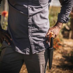 uma faca de jardim multifuncional projetada para remover ervas daninhas, plantar, dividir, transplantar e muito mais, a ferramenta de jardim fiskars & hori hori tem uma lâmina de aço inoxidável resistente à corrosão com uma espiga estendida para maior durabilidade. esta faca de dois gumes apresenta uma borda afiada e retificada com precisão para cortar grama e sistemas de raízes e uma borda serrilhada para serrar vegetação espessa. uma ponta bifurcada facilita o trabalho de remoção de ervas daninhas, enquanto as medidas métricas e inglesas de fácil leitura garantem uma profundidade de plantio precisa. uma alça ergonômica e macia oferece conforto e controle, enquanto uma bainha de plástico rígido incluída com presilha para cinto oferece armazenamento e portabilidade convenientes.