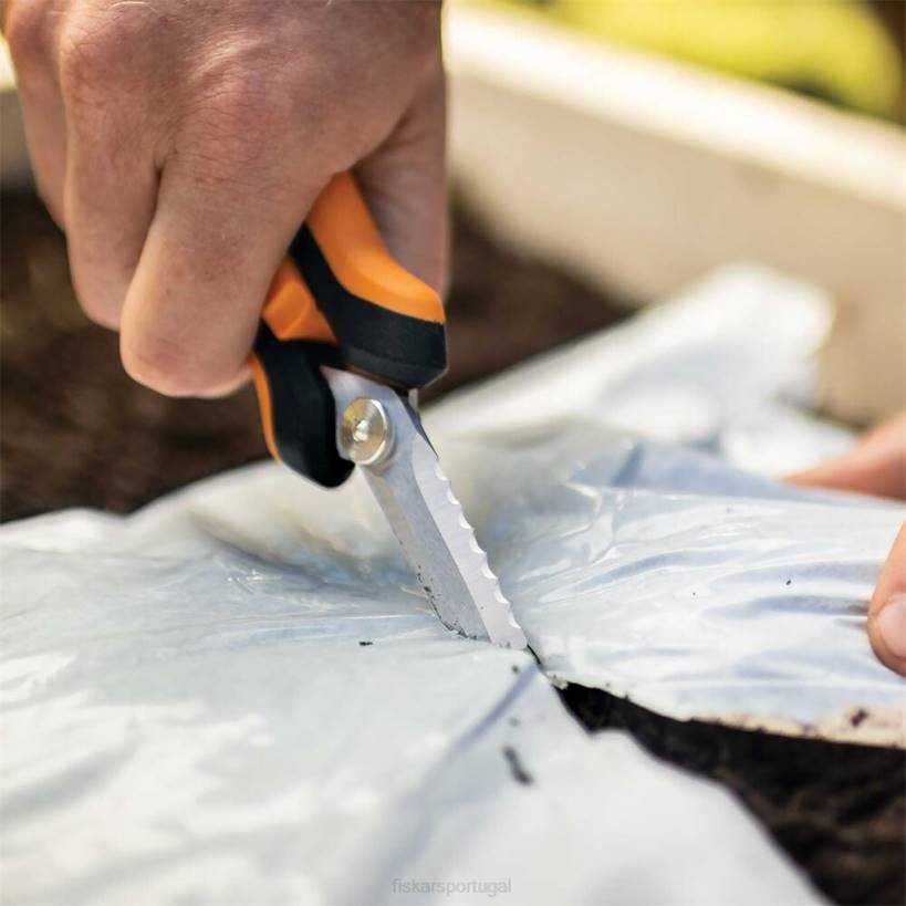 vencedor do prêmio red dot best of the best 2019. corte facilmente sacos de solo e corte arame, rede, tecido de paisagem e muito mais com as lâminas multiuso de fiskars e recortes de jardim multiuso. desde adicionar fertilizante até montar treliças, preparar e manter uma base sólida é a chave para um jardim saudável e pode envolver uma variedade de tarefas árduas – todas as quais dependem da manutenção da nitidez da lâmina. esta ferramenta versátil possui lâminas de aço inoxidável totalmente endurecidas e retificadas com precisão que cortam até a ponta e permanecem afiadas durante o uso pesado. uma borda externa serrilhada é ideal para serrar barbante ou corda leve, enquanto a outra borda reta corta caixas e sacos abertos com precisão e facilidade. um cortador de fio integrado também evita danos à lâmina. além disso, uma mola de ação fácil ™ abre suavemente as lâminas após cada corte para ajudar a reduzir a fadiga das mãos, enquanto o softgrip e os pontos de contato aumentam o conforto e o controle. uma trava de fácil abertura e uma bainha de náilon robusta com presilha para cinto garantem confiabilidadearmazenamento e portabilidade.