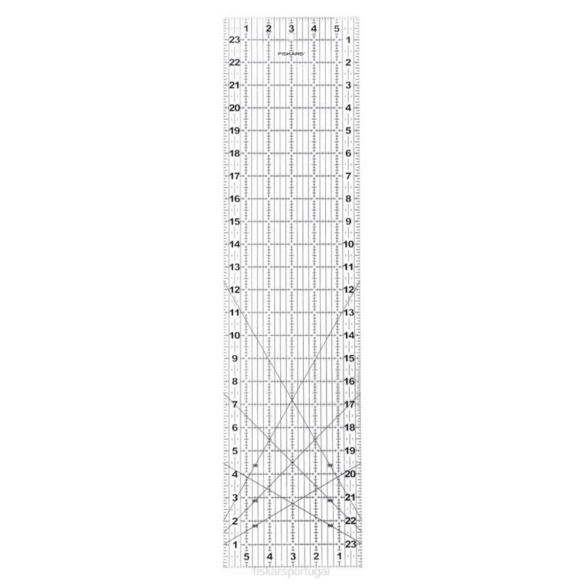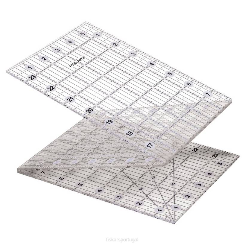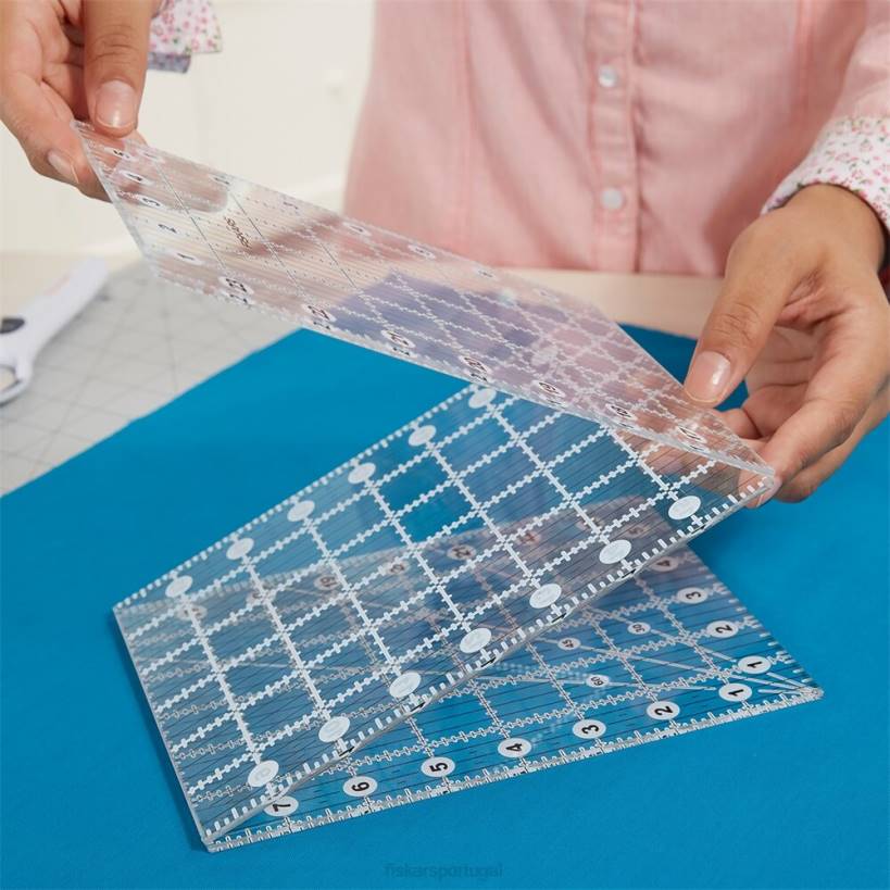 uma régua de 6″ x 24″ dobra-se até um terço do seu tamanho para uma ferramenta de medição portátil que permite fazer cortes longos sem o volume de uma régua normal. um design robusto e conveniente facilita o corte de tiras de tecido diretamente do parafuso, enquanto a posição dobrada de 6 “x 8” da régua é ótima para cortes menores e armazenamento. dobradiças claras e duráveis permitem que a régua fique perfeitamente plana para cortes suaves sem prender ou prender. as linhas apresentam interseções claras e dois tons para melhor visibilidade em tecidos claros, escuros e estampados. além disso, linhas angulares de 30, 45 e 60 graus simplificam o corte em ângulo.