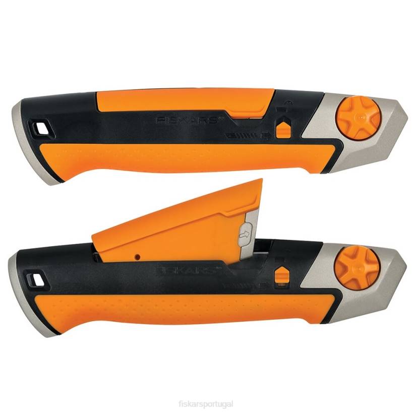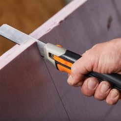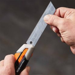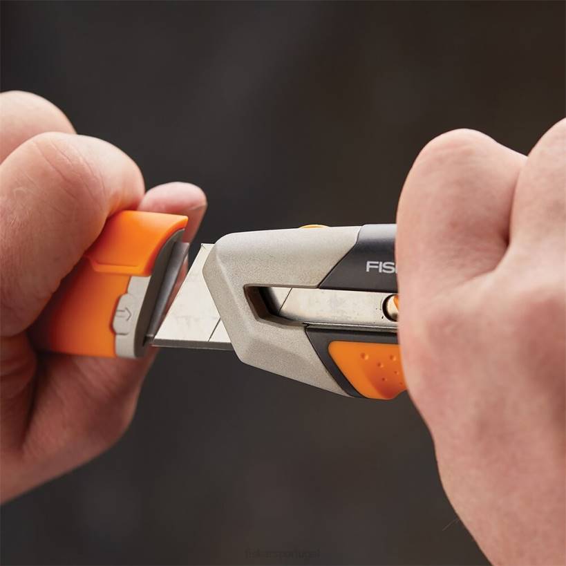 - o canivete de encaixe fiskars pro oferece troca conveniente de lâmina com carregamento frontal, sem peças soltas